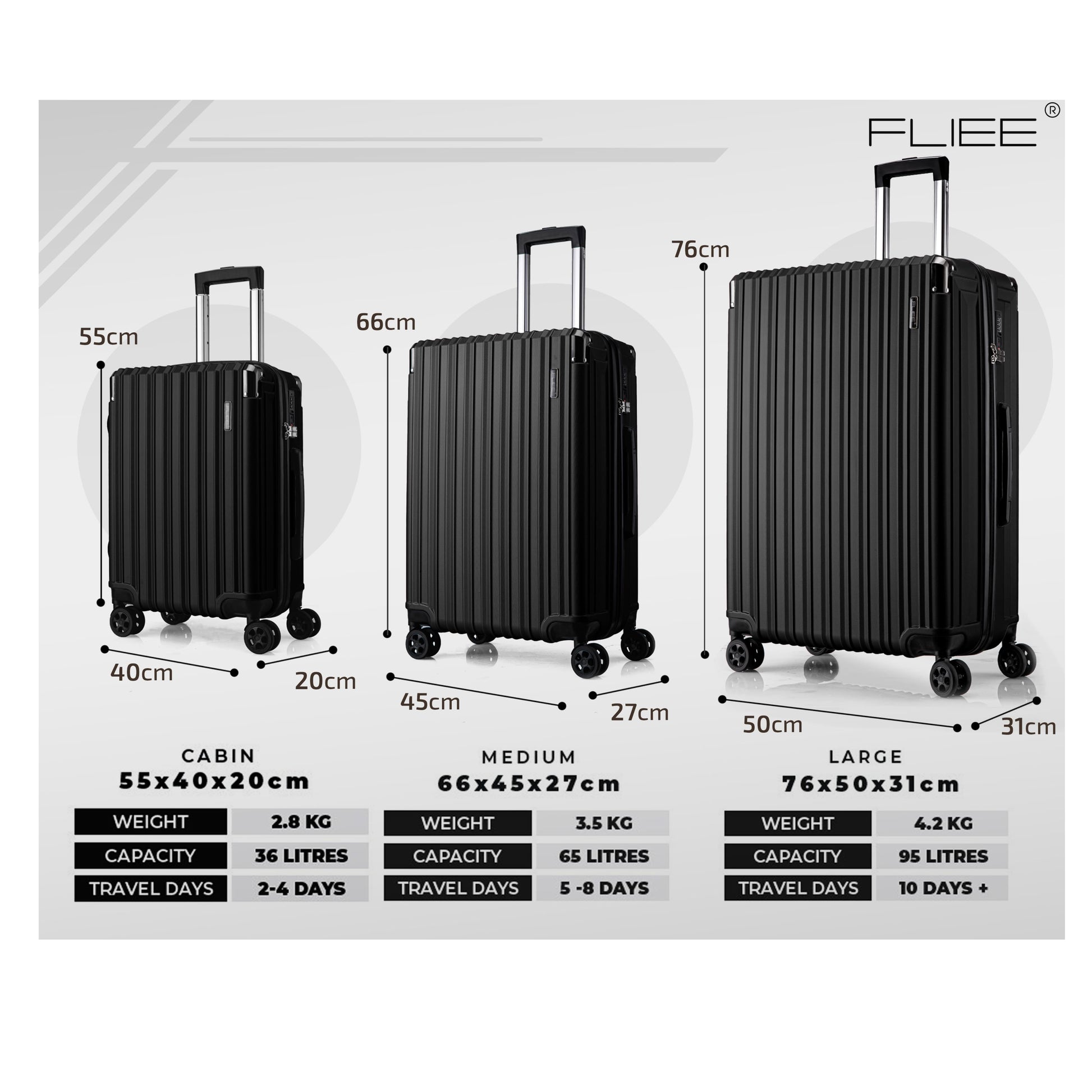 Glides straight even when fully loaded; FLIEE wheels track better than any case I have owned. Smart finish.