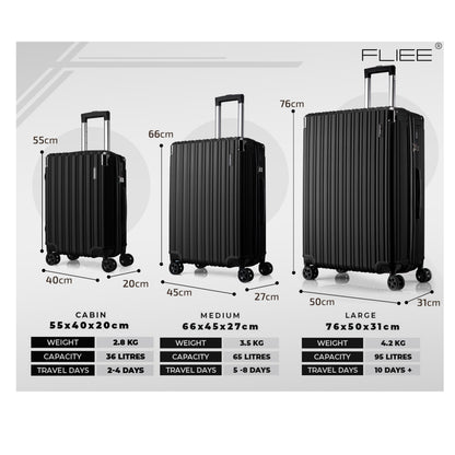 Set of 3 Suitcases - The perfect travel companions for jet-setters who value both style and durability. This set includes three sizes: a spacious 28" Large, a versatile 24" Medium (suitable for both hold/check-in and cabin use), and a convenient 20" Small (ideal for carry-on or cabin luggage).