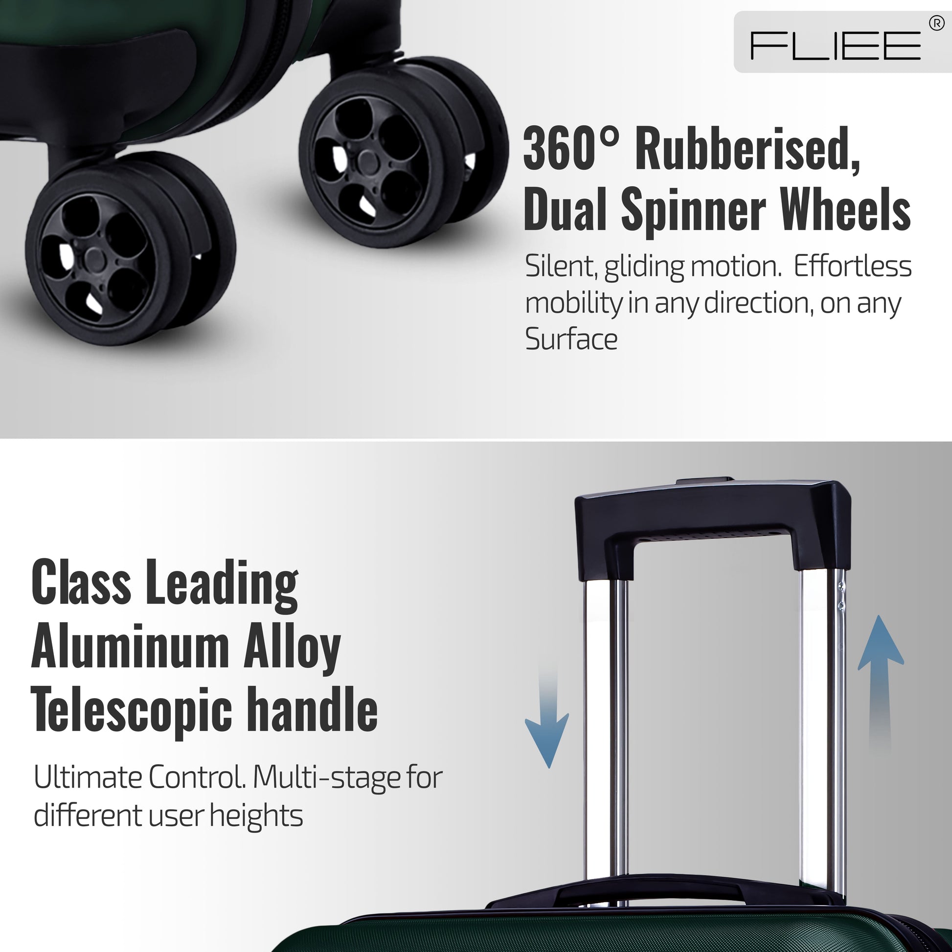 Glides straight even when fully loaded; FLIEE wheels track better than any case I have owned. Smart finish.